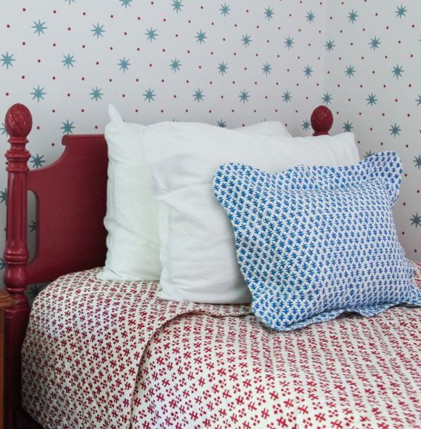 Eliza used 10 yards of Tucker in Red for a double-sided twin-sized coverlet.