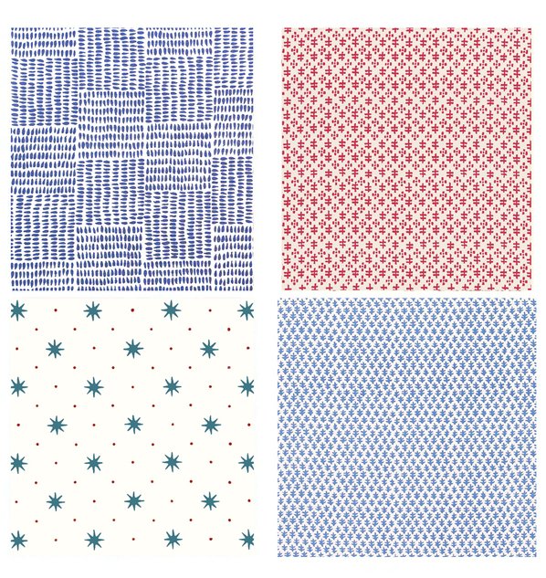 Eliza used 3 yards of Serendipity in Blue Red for the main fabric and 1.5 yards of Tucker in Red for the trim per each shade. For this shade the trim was was 1" wide.